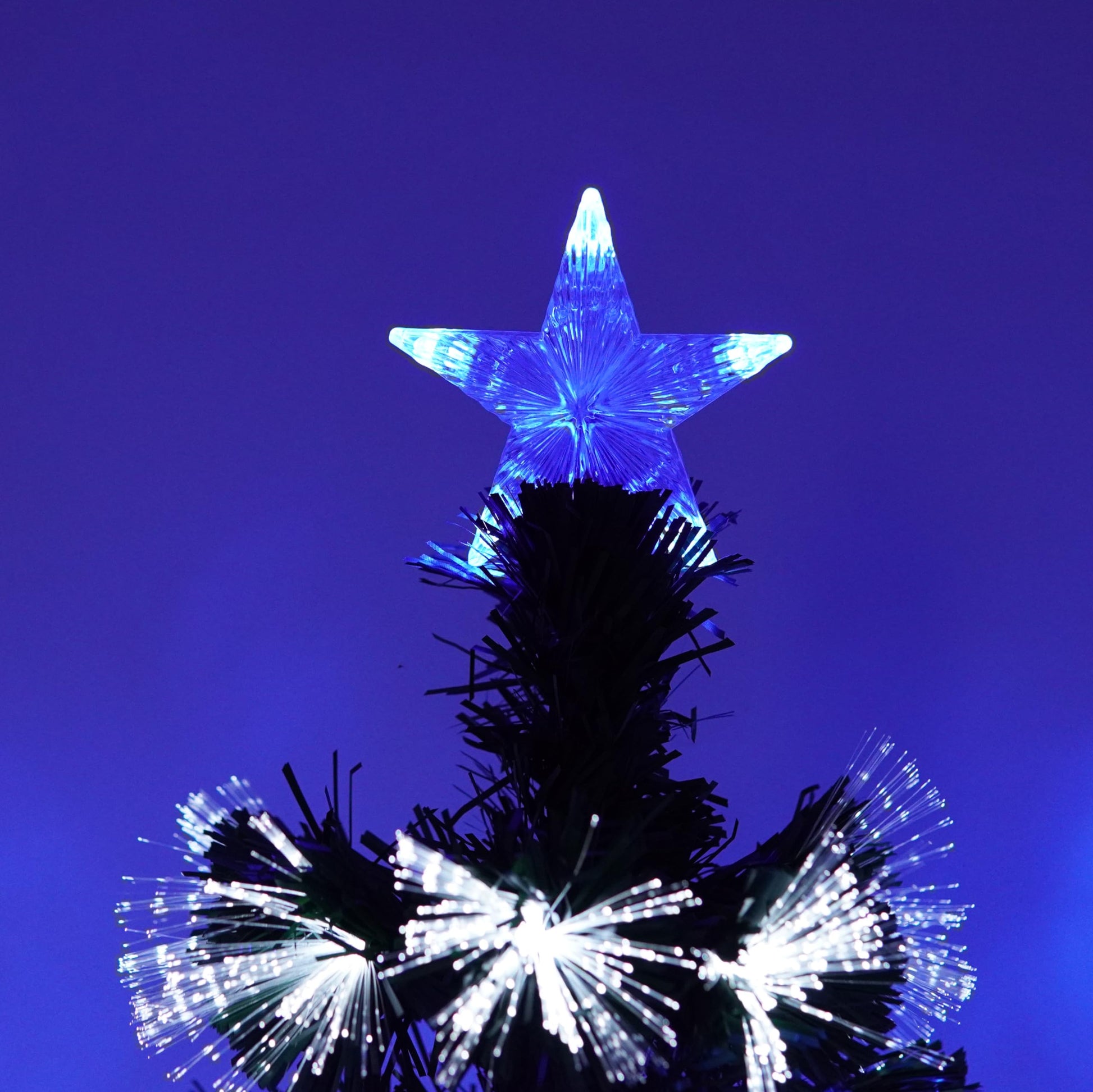 Asinse 6ft Fiber Optic Artificial Christmas Tree, 250 Blue&White LED Lights, Pre-Lit Xmas Tree with 110 Transparent Stars, Metal Stand (6FT/180CM, Type 3)
