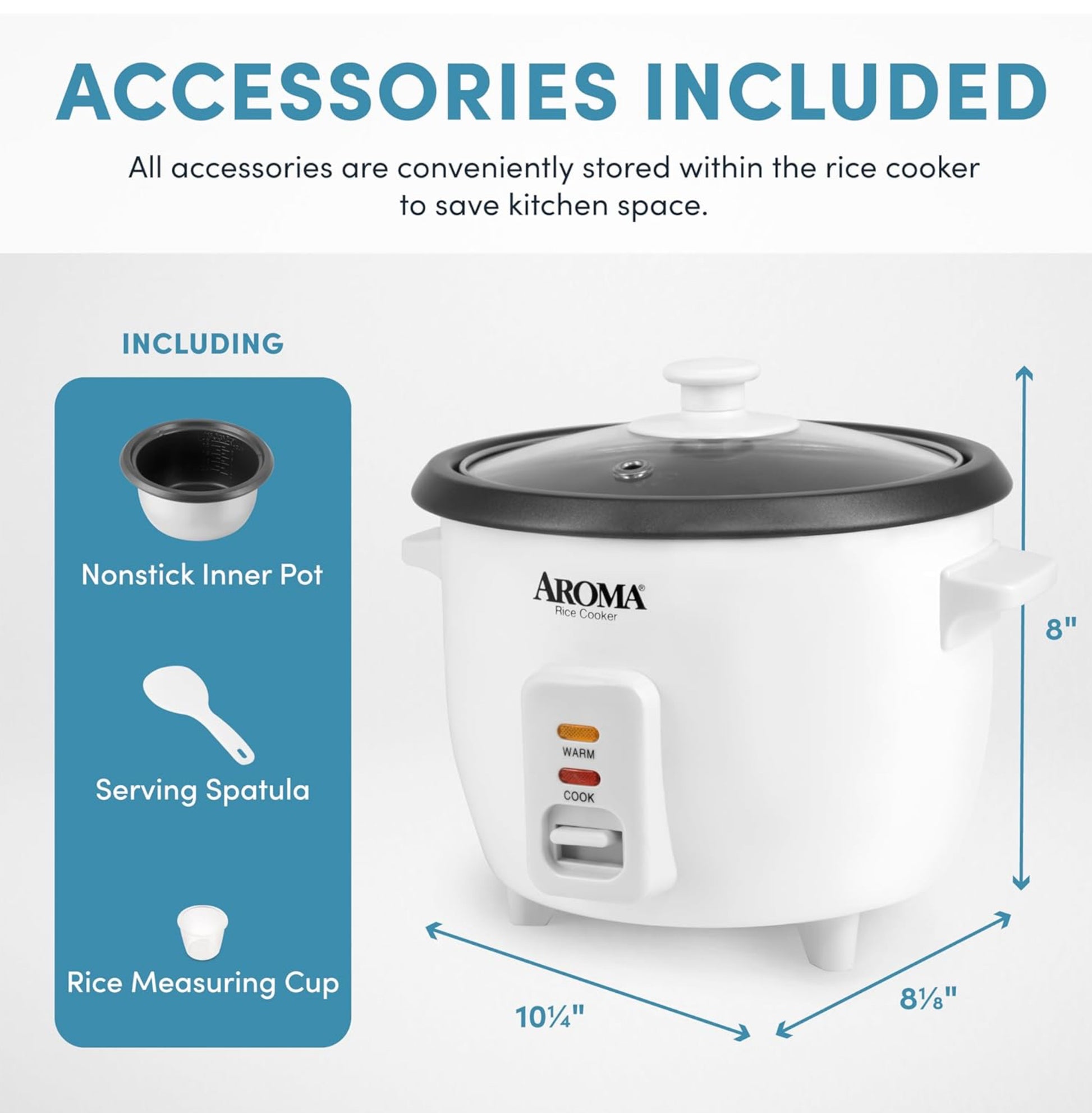 - Includes Rice Measuring Cup and Serving Spatula