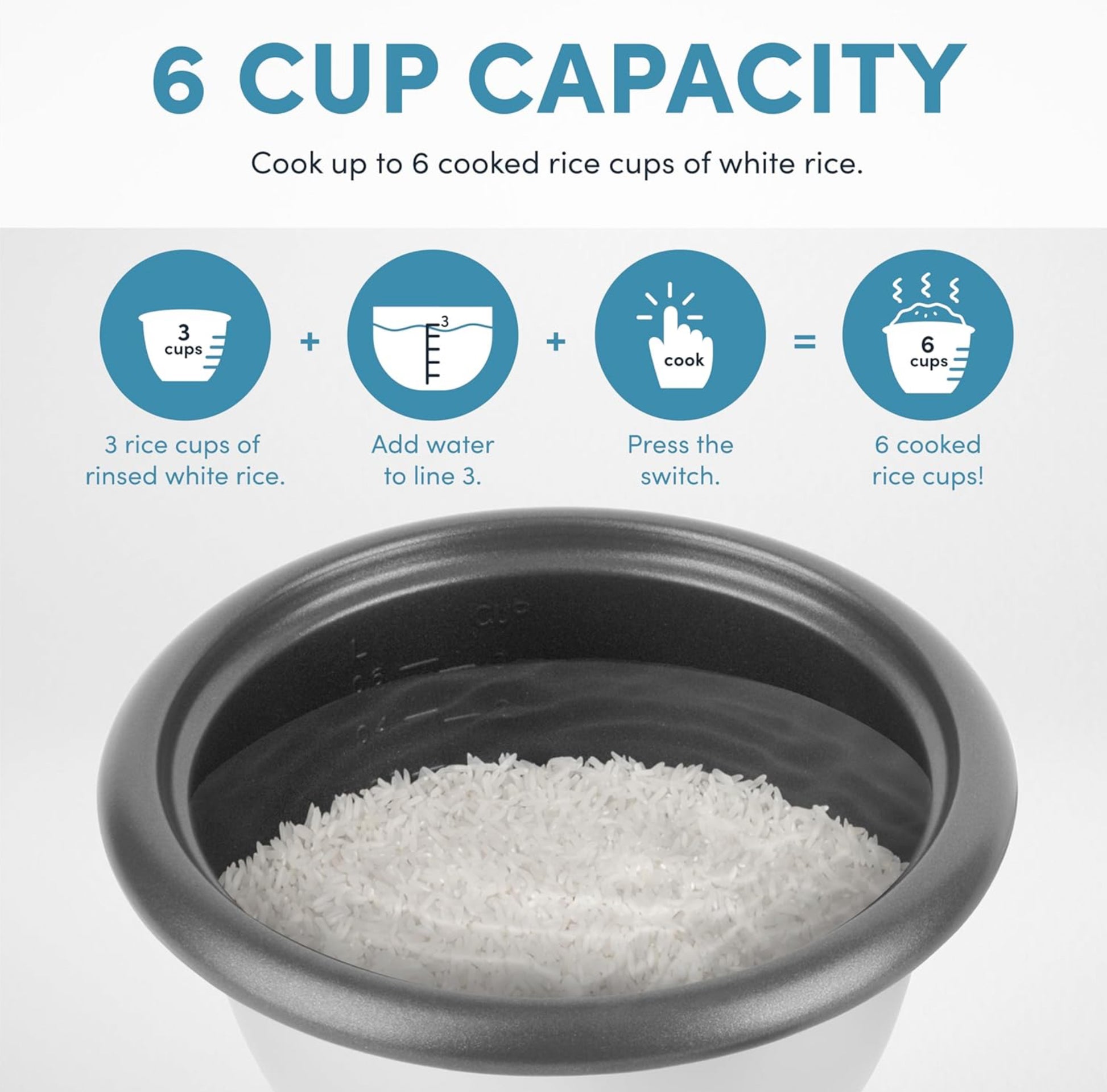 - Perfectly prepares 2 to 6 cups of any variety of cooked rice